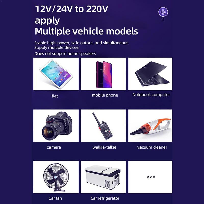 Alimentation fiableConvertit l'nergie de votre vhicule pour charger vos appareils en dplacement.Utilisation polyvalenteIdal pour les voyages en voiture, le camping, les dplacements professionnels ou les situations d'urgenceCompatibilit multiplePlusieurs interfaces de sortie pour connecter ordinateurs portables, smartphones, tablettes, et plus encore.Pratique et efficaceDites adieu aux batteries puises et restez connect o que vous soyez.Alimentation fiable Convertit l'nergie de votre vhicule pour charger vos appareils en dplacement. Utilisation polyvalente Idal pour les voyages en voiture, le camping, les dplacements professionnels ou les situations d'urgence Compatibilit multiple Plusieurs interfaces de sortie pour connecter ordinateurs portabAlimentation fiable Convertit l'nergie de votre vhicule pour charger vos appareils en dplacement. Utilisation polyvalente Idal pour les voyages en voiture, le camping, les dplacements professionnels ou les situations d'urgence Compatibilit multiple Plusieurs interfaces de sortie pour connecter ordinateurs portab